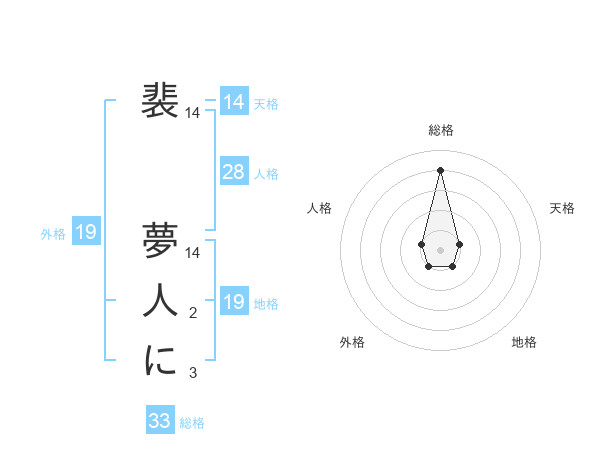 裴 夢人にさんを姓名の画数から五運を鑑定