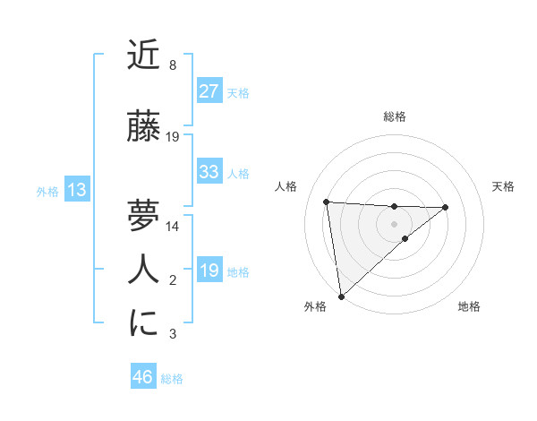 近藤 夢人にさんの外格は13画の5点!