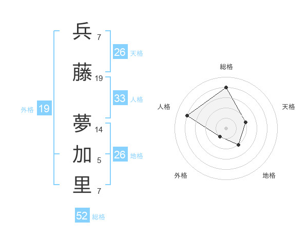 兵藤 夢加里さんを姓名の画数から五運を鑑定