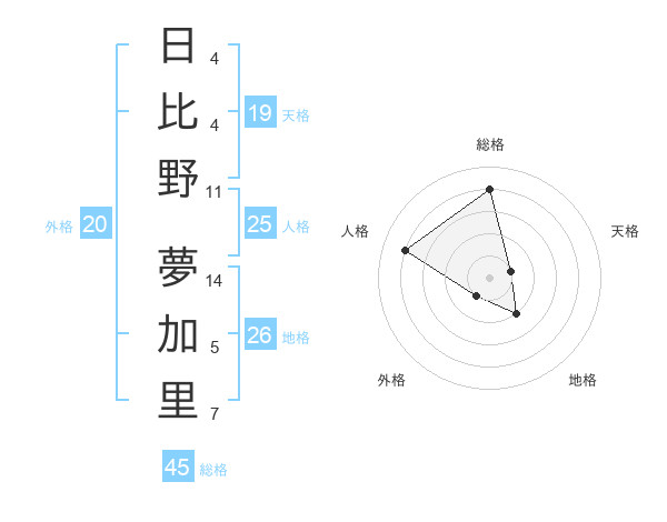 日比野 夢加里さんを姓名の画数から五運を鑑定