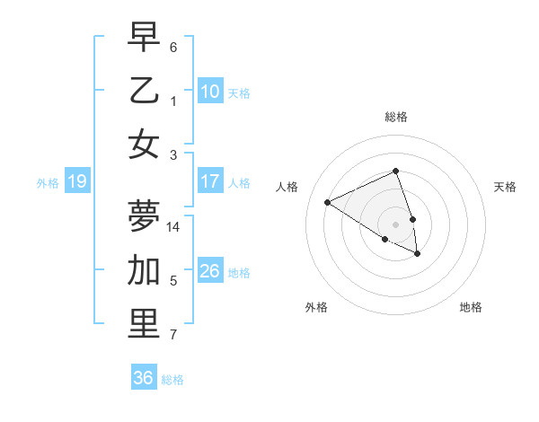 早乙女 夢加里さんを姓名の画数から五運を鑑定