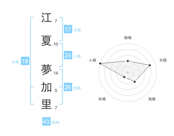 江夏 夢加里さんの総格は43画の2点!
