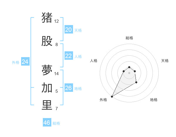 猪股 夢加里さんを姓名の画数から五運を鑑定