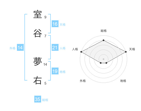 室谷 夢右さんを姓名の画数から五運を鑑定