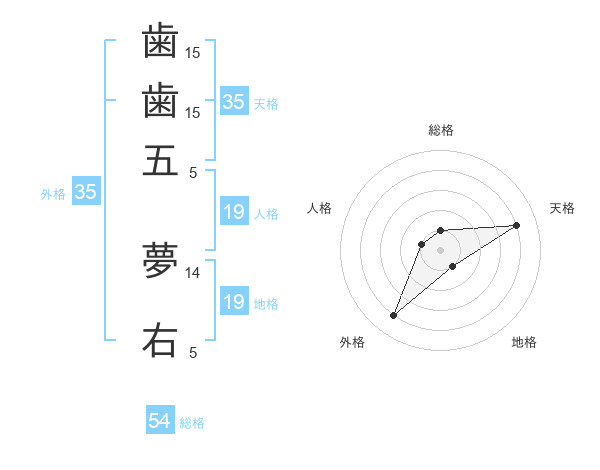 歯歯五 夢右さんの外格は35画の4点!