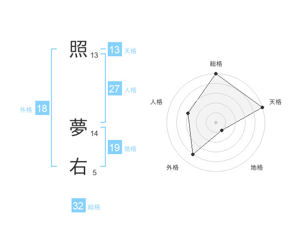 照 夢右さんの天格は13画の5点!