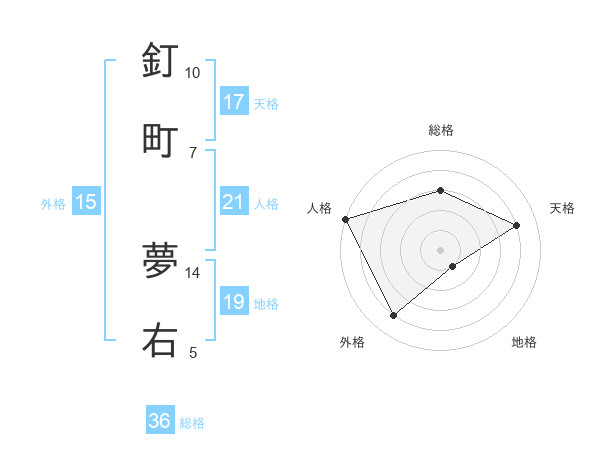 釘町 夢右さんの天格は17画の4点!