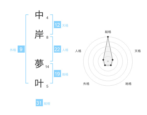 中岸 夢叶さんの総格は31画の5点!