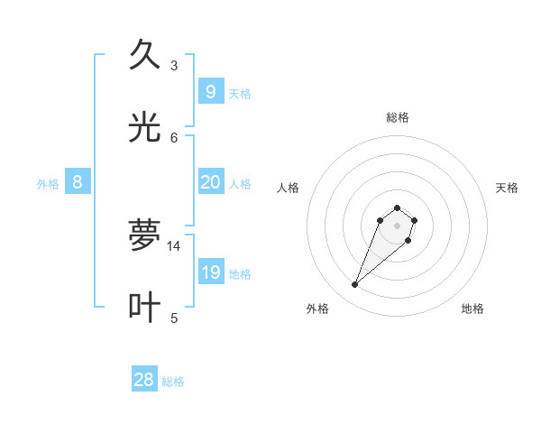 久光 夢叶さんの総格は28画の1点!