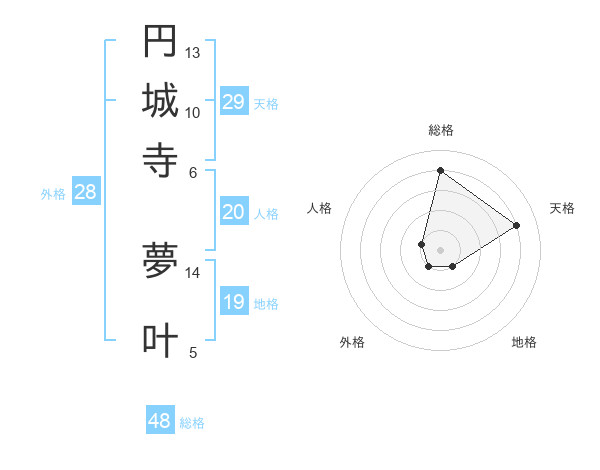 円城寺 夢叶さんの天格は29画の4点!
