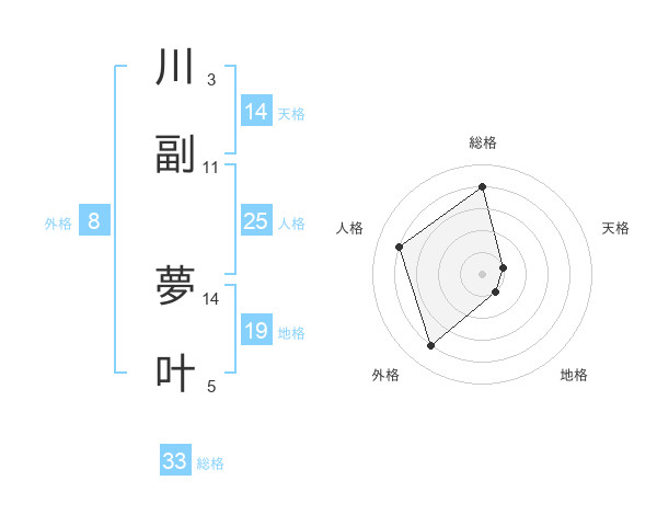 川副 夢叶さんを姓名の画数から五運を鑑定