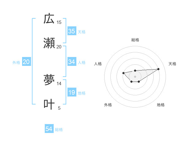 広瀬 夢叶さんの外格は20画の1点!