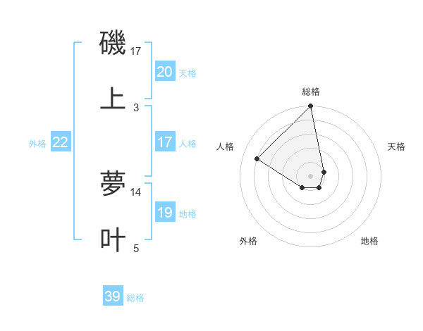 磯上 夢叶さんの総格は39画の5点!