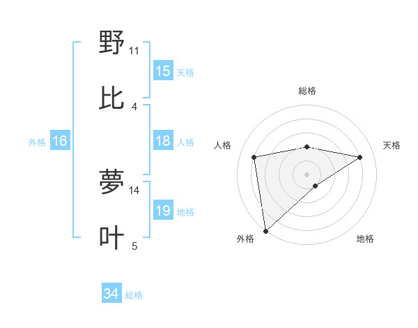 野比 夢叶さんを姓名の画数から五運を鑑定
