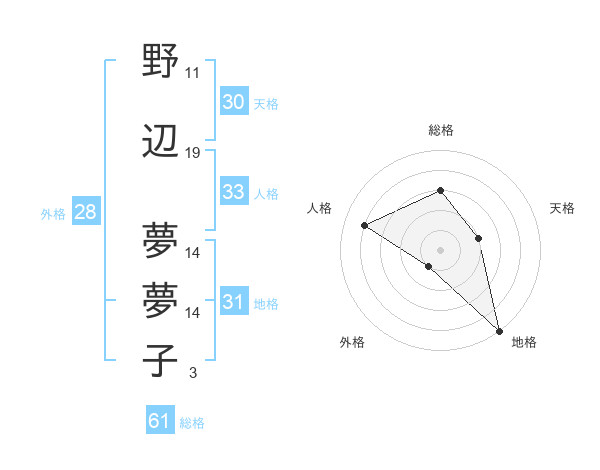 野辺 夢夢子さんを姓名の画数から五運を鑑定