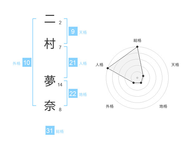 二村 夢奈さんの総格は31画の5点!