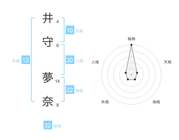 井守 夢奈さんを姓名の画数から五運を鑑定