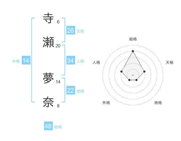 寺瀬 夢奈さんを姓名の画数から五運を鑑定