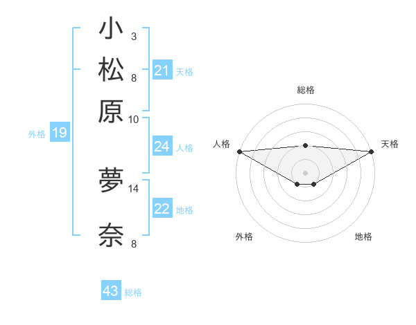 小松原 夢奈さんを姓名の画数から五運を鑑定