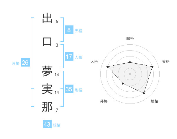 出口 夢実那さんを姓名の画数から五運を鑑定