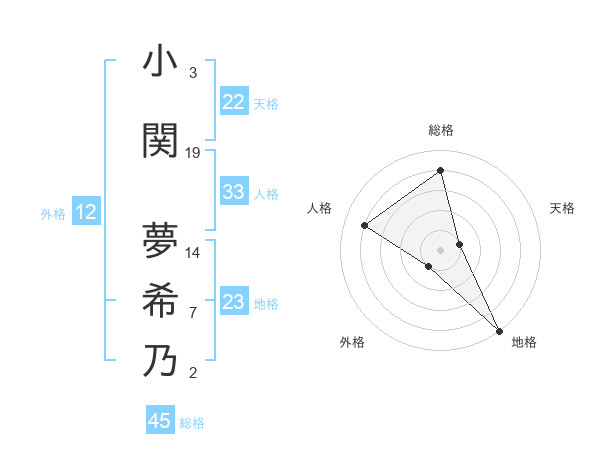 小関 夢希乃さんの天格は22画の1点!