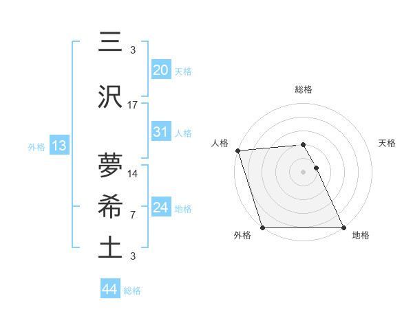 三沢 夢希土さんを姓名の画数から五運を鑑定