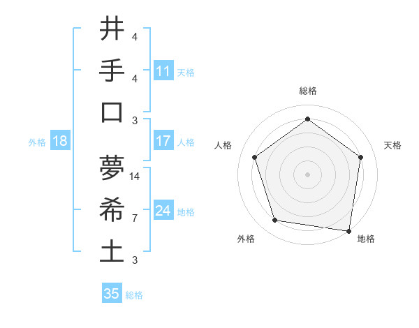 井手口 夢希土さんを姓名の画数から五運を鑑定