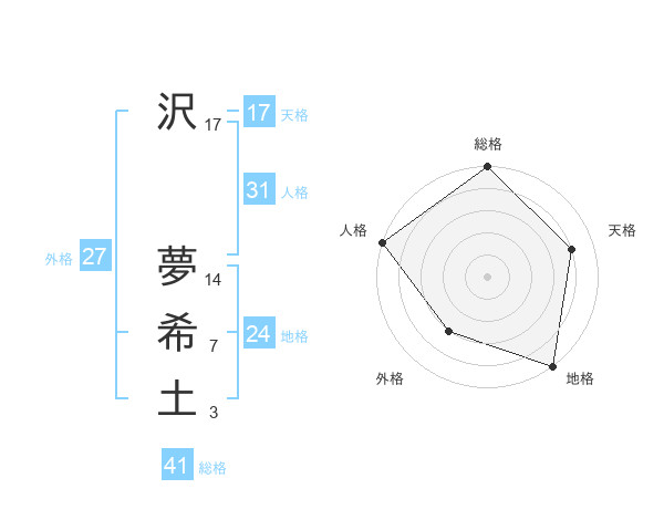 沢 夢希土さんの総格は41画の5点!