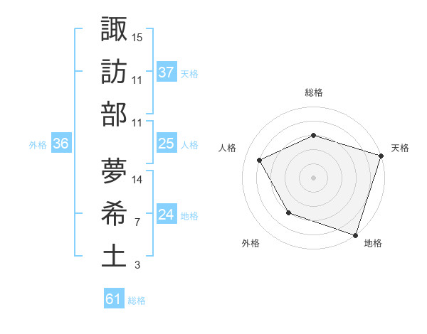 諏訪部 夢希土さんを姓名の画数から五運を鑑定