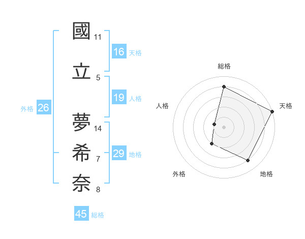 國立 夢希奈さんの天格は16画の5点!