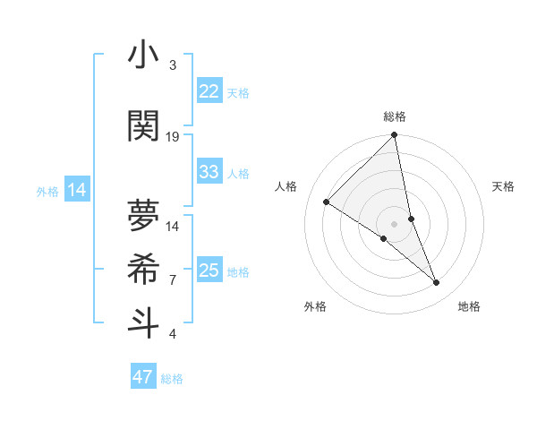 小関 夢希斗さんの総格は47画の5点!