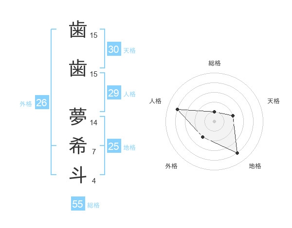 歯歯 夢希斗さんの総格は55画の1点!