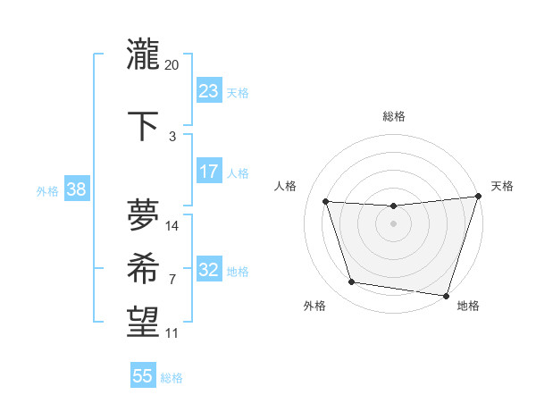 瀧下 夢希望さんを姓名の画数から五運を鑑定