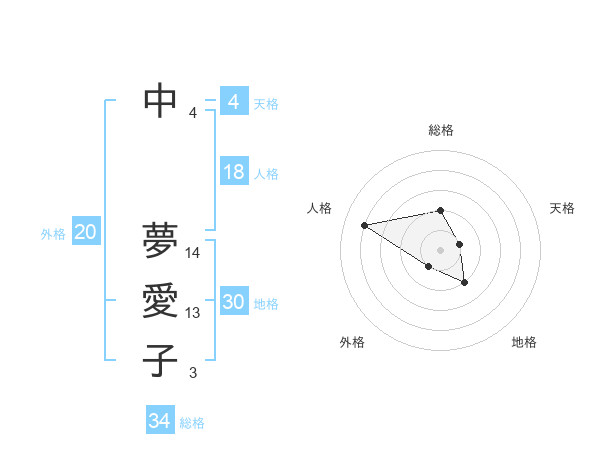 中 夢愛子さんの総格は34画の2点!