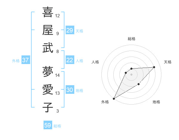 喜屋武 夢愛子さんの外格は37画の5点!