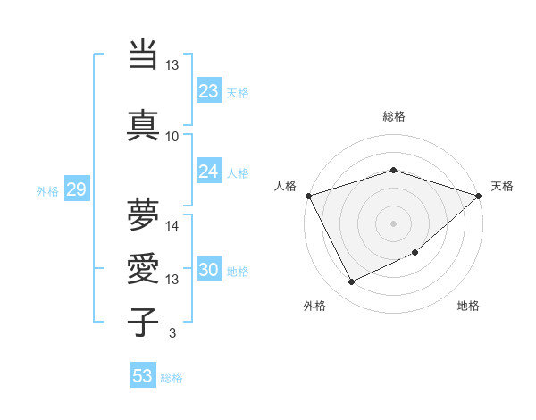 当真 夢愛子さんを姓名の画数から五運を鑑定