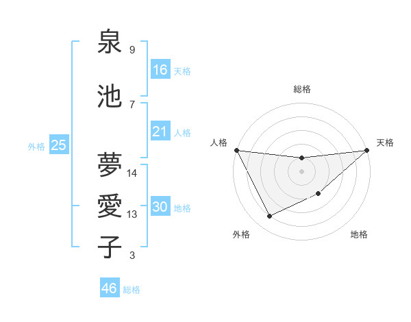 泉池 夢愛子さんの総格は46画の1点!