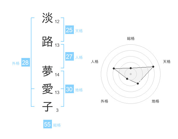 淡路 夢愛子さんを姓名の画数から五運を鑑定