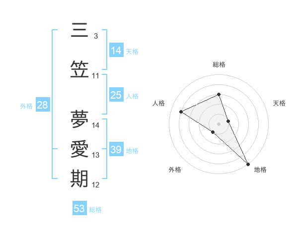 三笠 夢愛期さんを姓名の画数から五運を鑑定