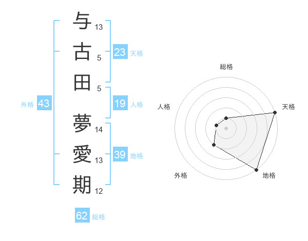 与古田 夢愛期さんを姓名の画数から五運を鑑定