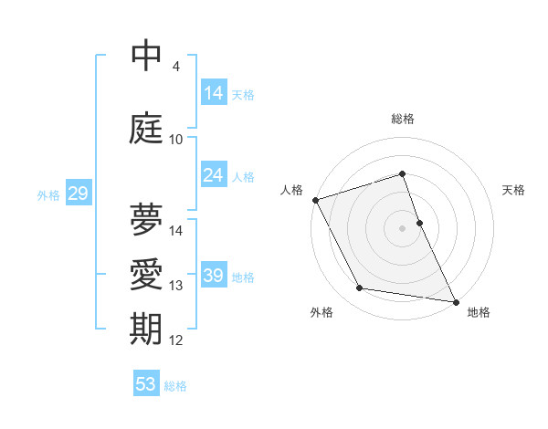 中庭 夢愛期さんを姓名の画数から五運を鑑定