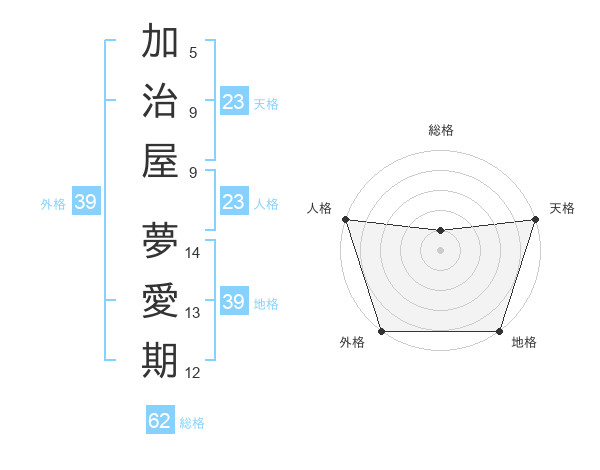 加治屋 夢愛期さんを姓名の画数から五運を鑑定