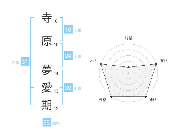 寺原 夢愛期さんの天格は16画の5点!