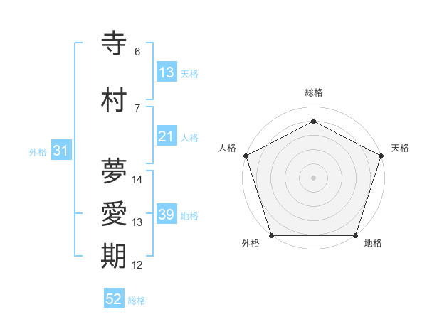 寺村 夢愛期さんを姓名の画数から五運を鑑定