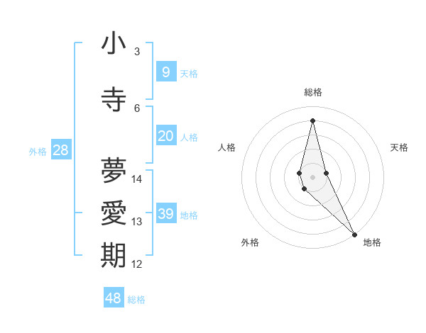 小寺 夢愛期さんの総格は48画の4点!