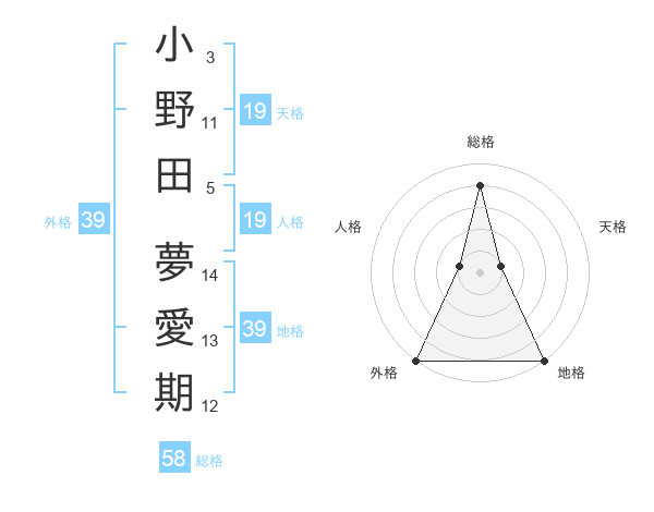 小野田 夢愛期さんを姓名の画数から五運を鑑定
