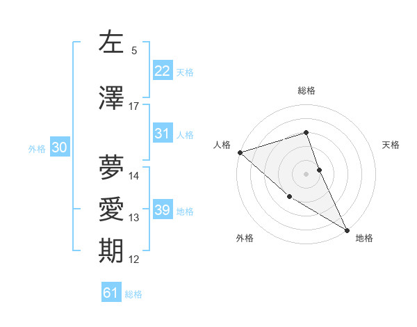 左澤 夢愛期さんの地格は39画の5点!