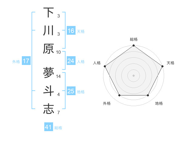 下川原 夢斗志さんを姓名の画数から五運を鑑定