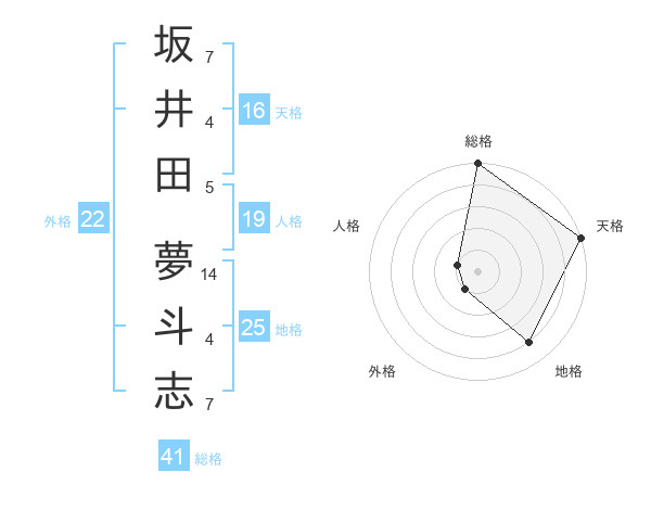 坂井田 夢斗志さんの総格は41画の5点!