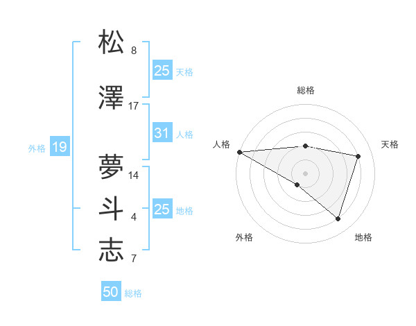 松澤 夢斗志さんを姓名の画数から五運を鑑定